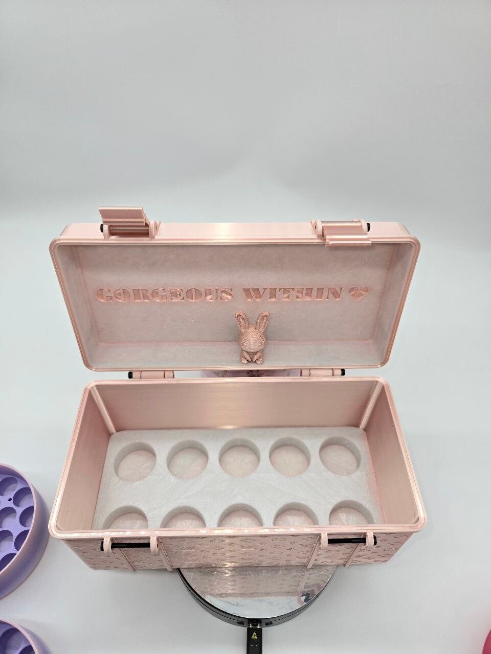 Safely store and organize your 10 bac water in this sleek, precision-designed 3D-printed case. Designed to have space for usage of spikes on Bac water vials. If you do not want the taller lid please select regular lid option in lid options tab.