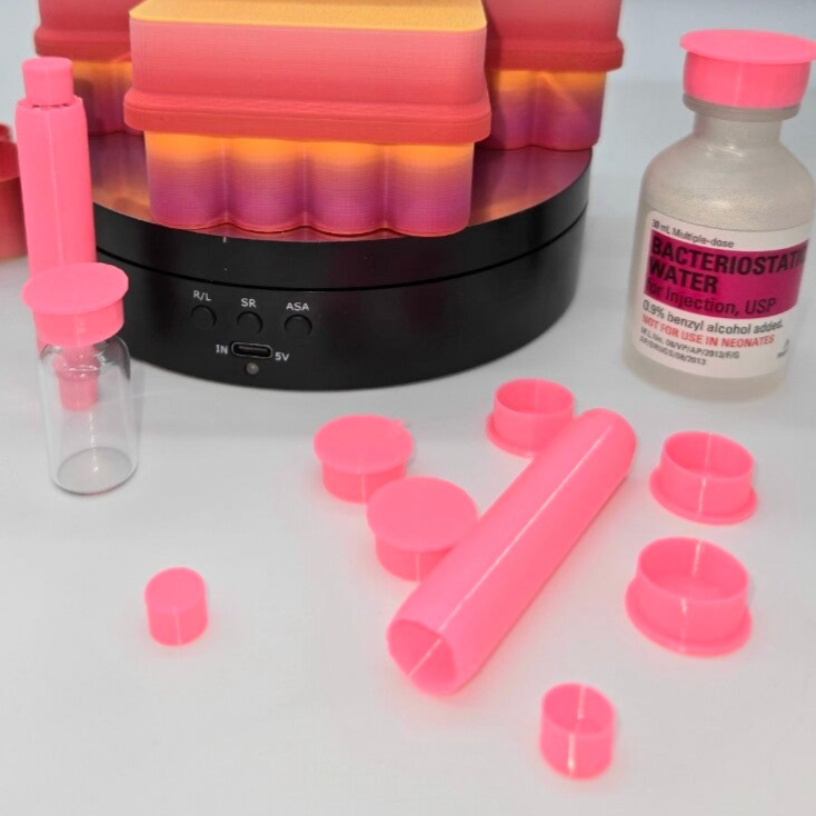 Display Clarification: Photos show sample setups (vials/pens not included)