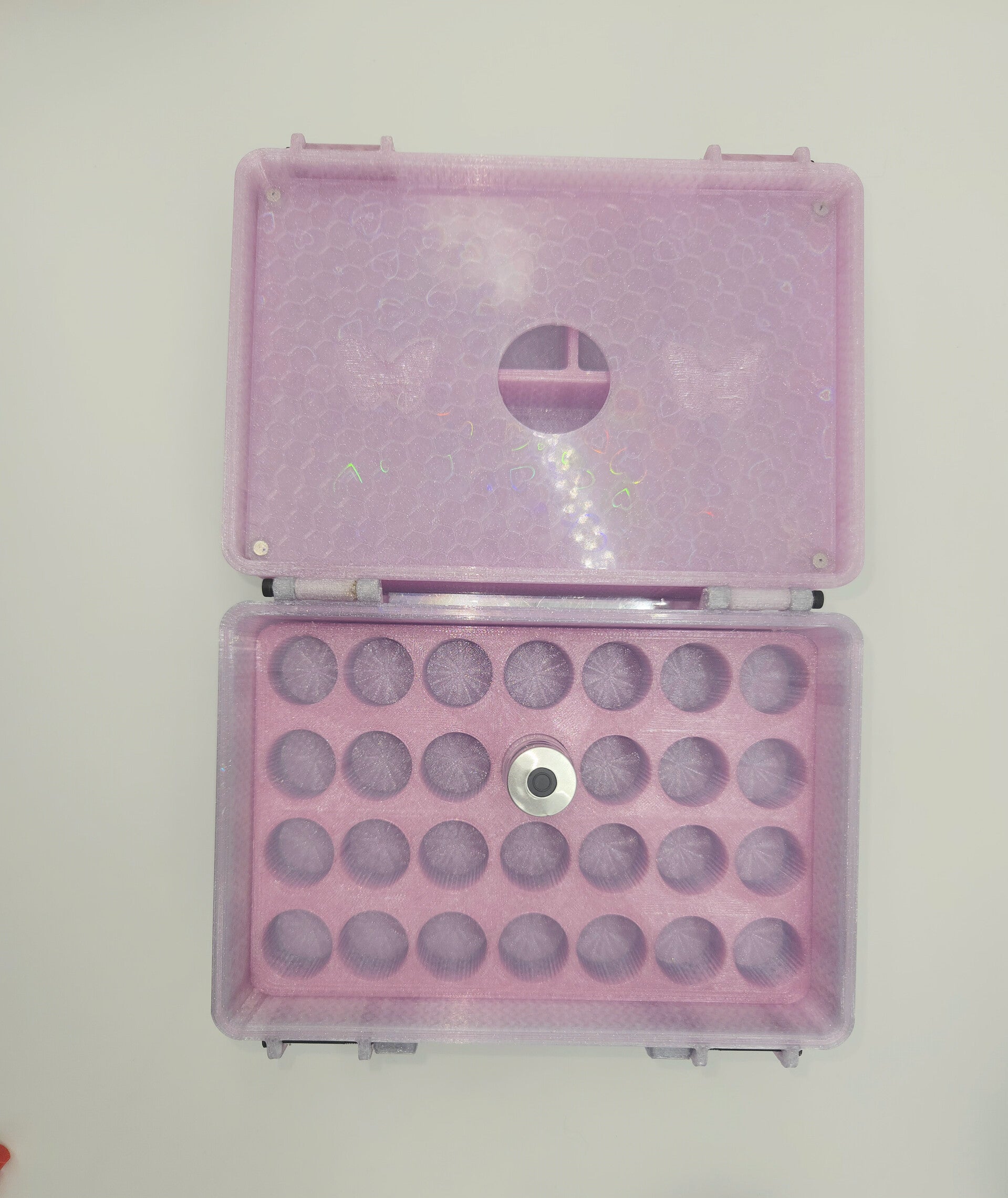 Keep everything organized in one place—this travel-ready case holds 28 vials, plus compartments for syringes, needles, and alcohol pads. Comes with a magnetic divider, latch, and handle for secure portability. Available in multiple colors to match your style.
